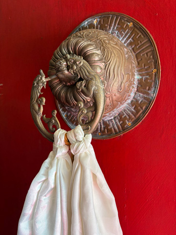 扉の取っ手にカタが結んである。「神聖な場所」という意味、たぶん。