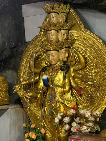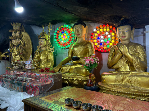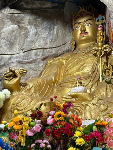 金色のグル・リンポチェ像とマンダラヴァ姫の洞窟