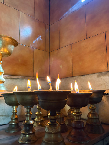 バターで作られた燈明を捧げ、さらに頂上の祈り堂を目指す。