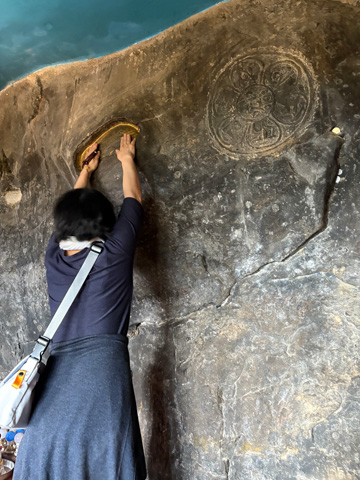 瞑想をしていたという洞窟には、彼の肩の形に岩が溶けたとか、